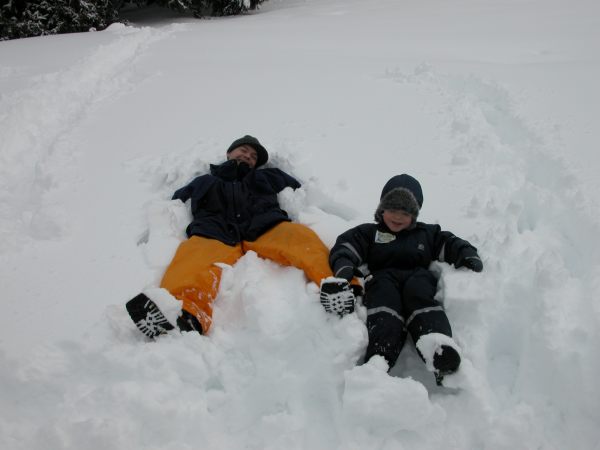 06-03-05: 50cm of new snow over night, what to do? Well, why not build your own snow land - that´s what we did! |