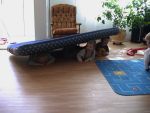04-02-01; Zeb in his new bed |
