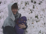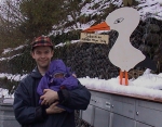 15-04-01: Surprising snowfall in mid April - not funny for the storch (or is it a duck?) |