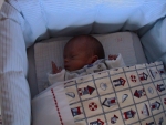 12-04-01: Finally at home, Zeb in grandma Karin´s basket - excellent! |