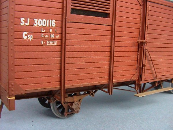 SJ class Gsp boxcar no 300116, originally delivered to Växiö - Åseda - Hultsfreds railway in 1923. The model is built from an early etching of Erik Walde. |