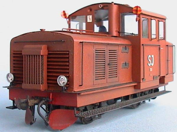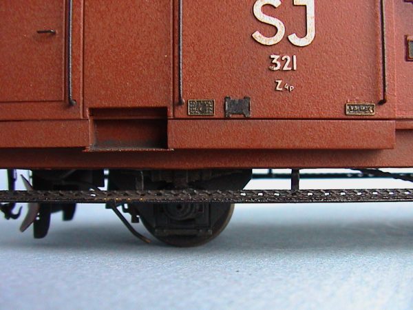 This Swedish State railways (SJ) class Z4p was built from a kit made by my good friend Erik Walde. The chassis is scratch built and has a 24x30 Mashima motor with a flywheel. The power is transmitted through a rubberband and normal worm gears. 1:45 scale, 19,0 mm gauge. |